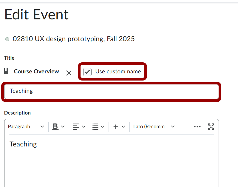 Follow these steps to edit course calendar events created trough TimeEdit: