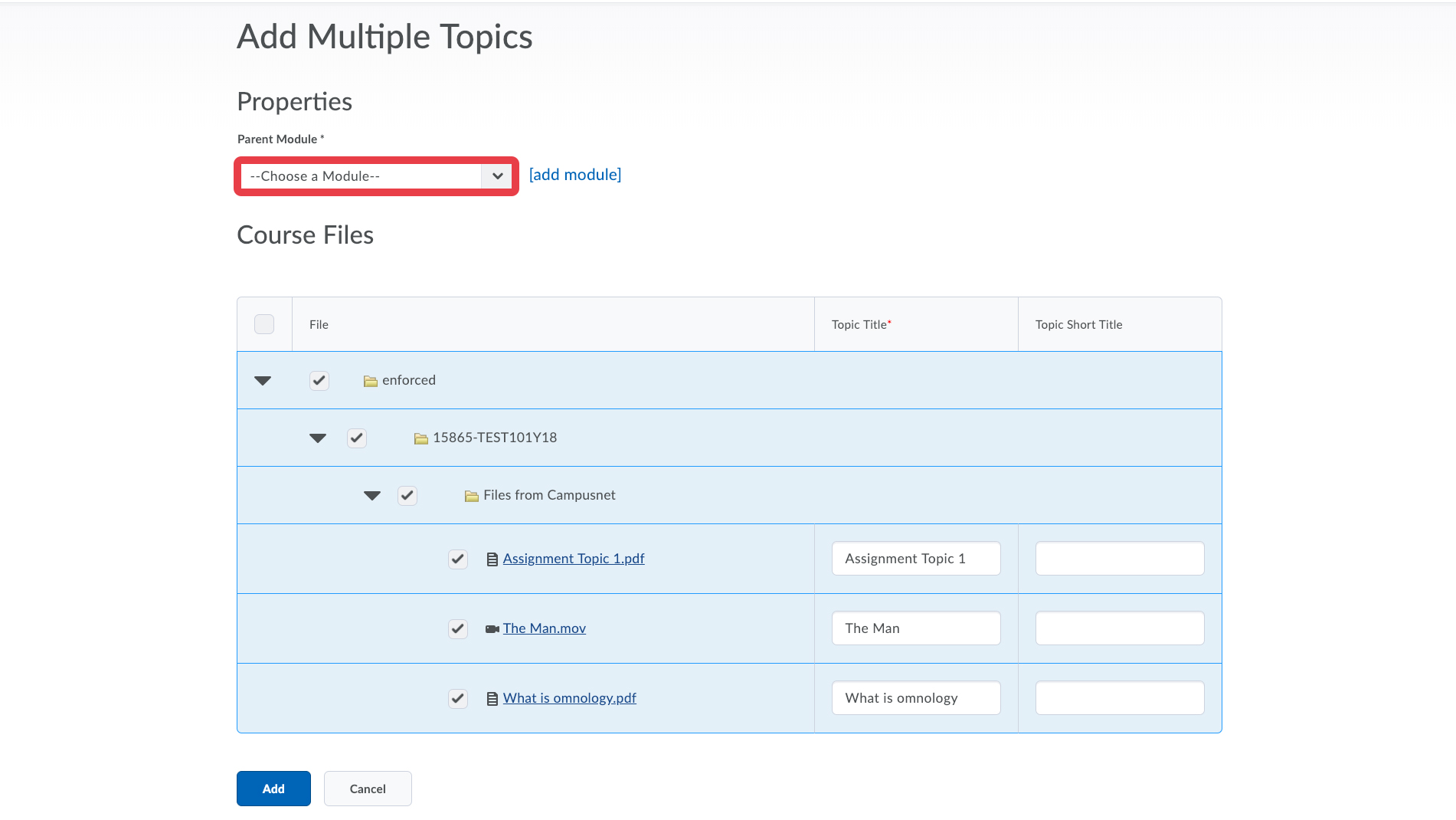 - From your course content you can see the files. You can drag the files around in the module and submodules.