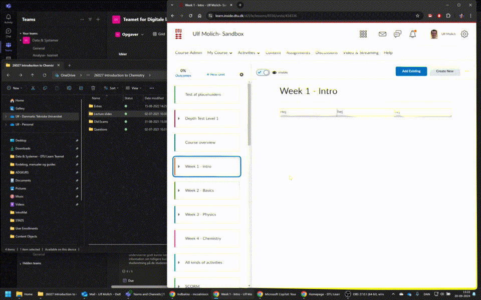 - Start from the content page of your course. Find the file on your computer, and drag the file to a unit in DTU Learn. Note: Make sure to have created a unit first in which you wish the file to be located. For help on creating a unit, see this guide