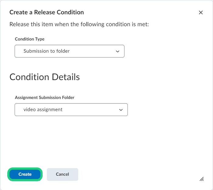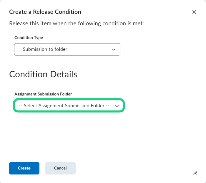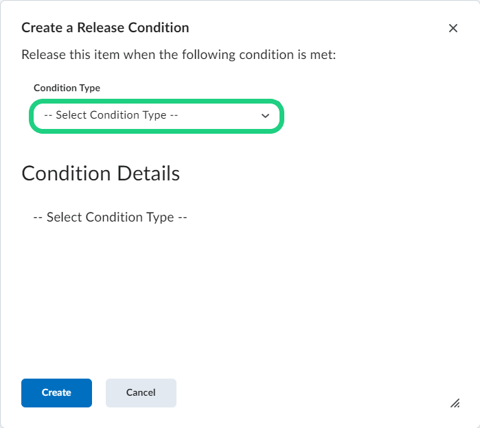 - When the window pops up select a condition type. You can choose things from the list like completing a checklist, enrolling in a goup or submitting an assignment.
