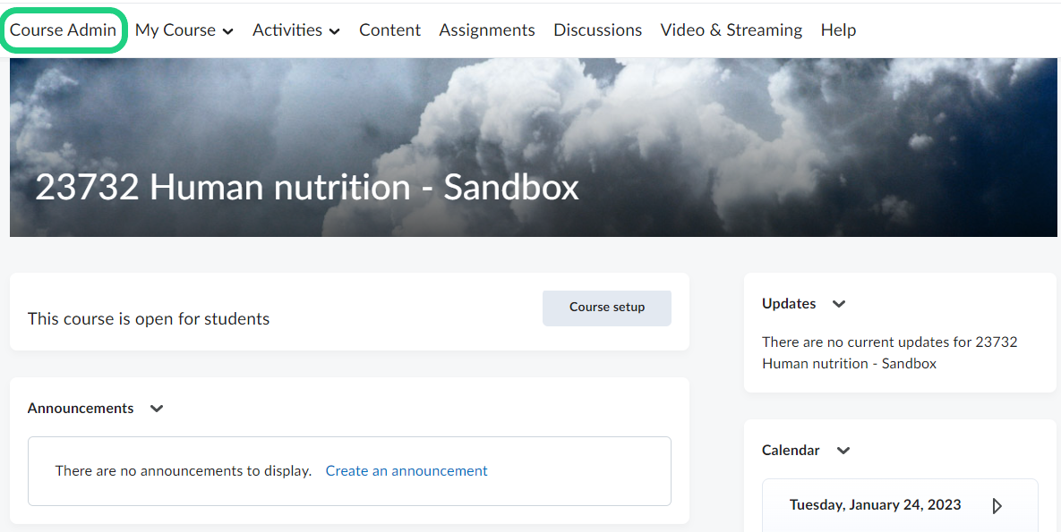 - Open the course admin side on your course.