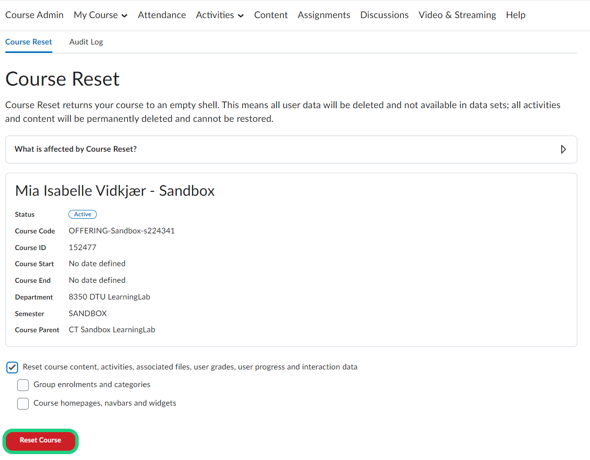 This is a guide to show how to reset your course on DTU learn.