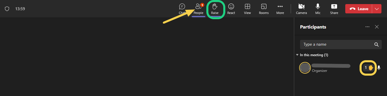 - With the 'Raise' function students can raise their hand, which will be shown in the list of participants.