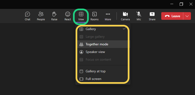 - You can change the display of the participants in the meeting by clicking on 'View'. This guide shows all the options to select: Selecting the View of Students in a Teams Meeting