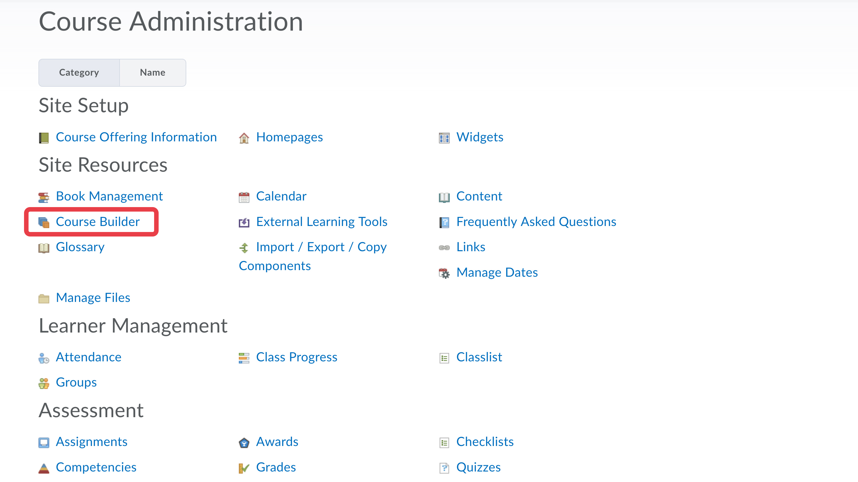 - From your Course Admin menu, select Course Builder.